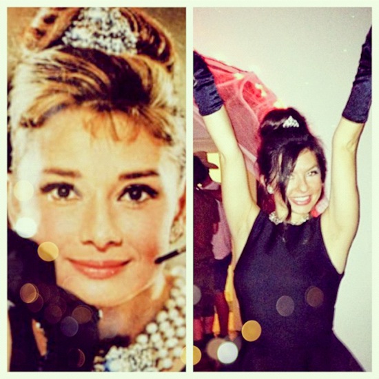 Halloween is one of my favorite holidays. For one obvious reason, it's my birthday. But also because I love to dress up. In past years I've spent hours putting together creative outfits, for example gluing 100 peacock feathers together to make a tail, or creating a jelly fish skirt out of endless amounts of ribbon and glow sticks. But this year the holiday snuck up on my so quickly I didn't even have a moment to spend thinking up a costume. As soon as I read this Glitter Guide article, I knew a glamourous leading lady is exactly what I was meant to be. I love the sophisticated glamour of Audrey's look, and after wearing this glam costume for an evening this weekend, I felt like I wouldn't mind playing dress up like this everyday.